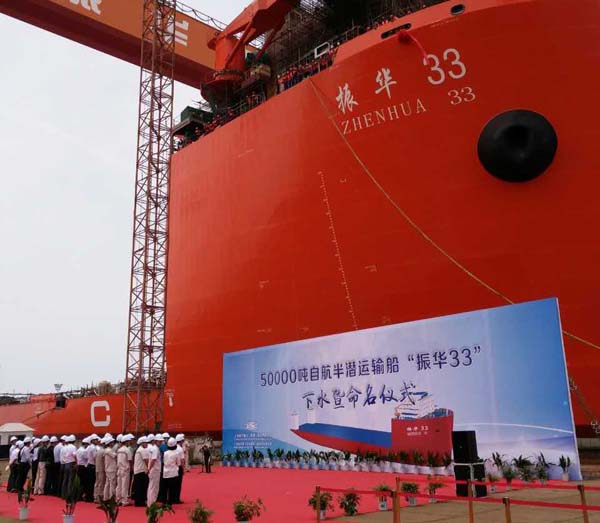 50000噸半潛船“振華33”在ZPMC啟東基地下水
