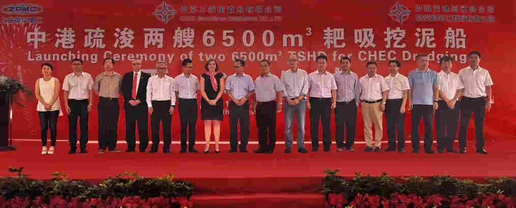 祝賀南通豪通公司(振華事業(yè)部)在上海振華重工(啟東公司)承接的整裝舾裝,搭載工程的6500m3耙吸式挖泥船,于8月18日上午11點(diǎn)18分順利下水!
