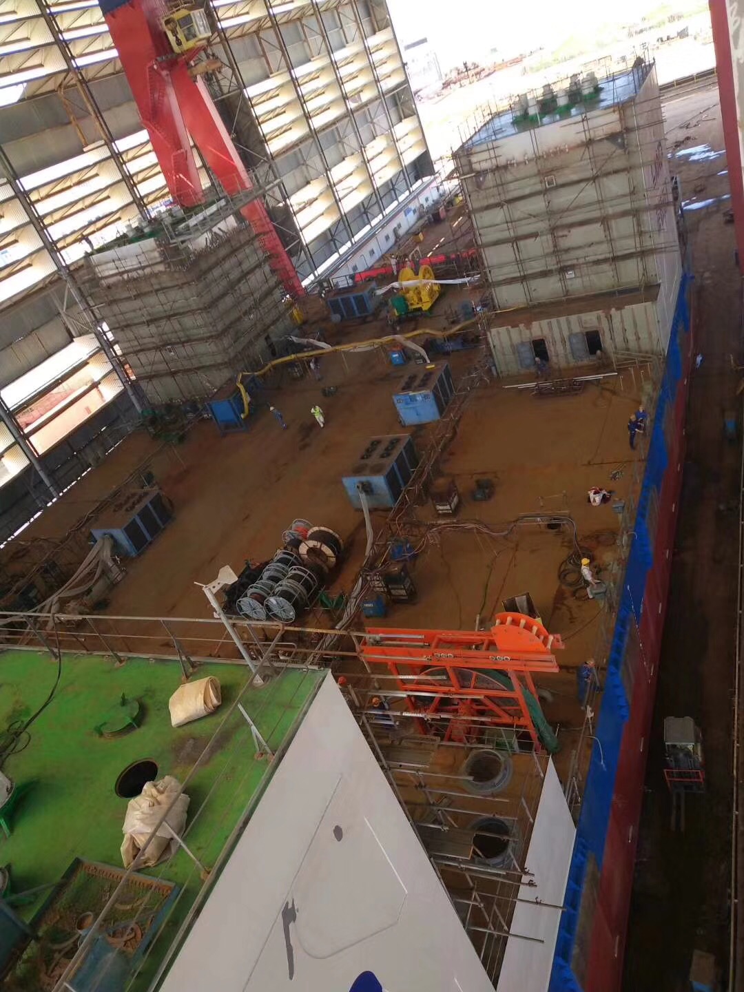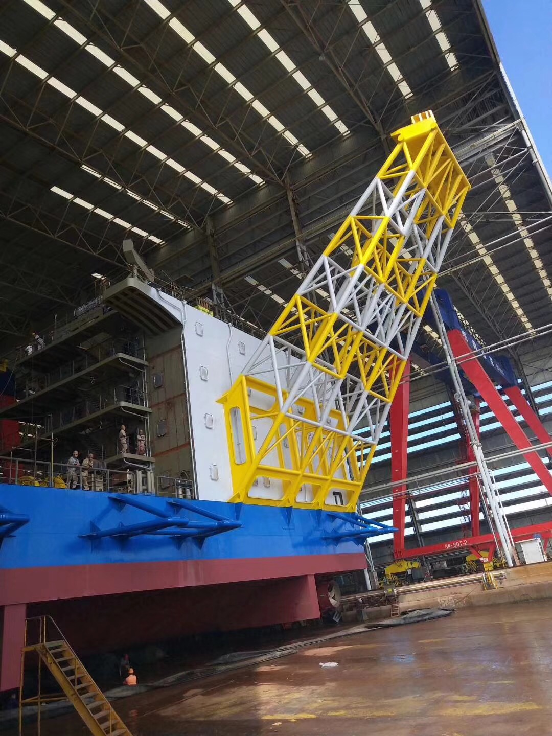 熱烈祝賀由南通豪通船務(wù)在潤邦海洋總包主船體搭載工程的“華電穩(wěn)強”號自升式海上風電安裝作業(yè)平臺于2018年8月28日中午順利下水!