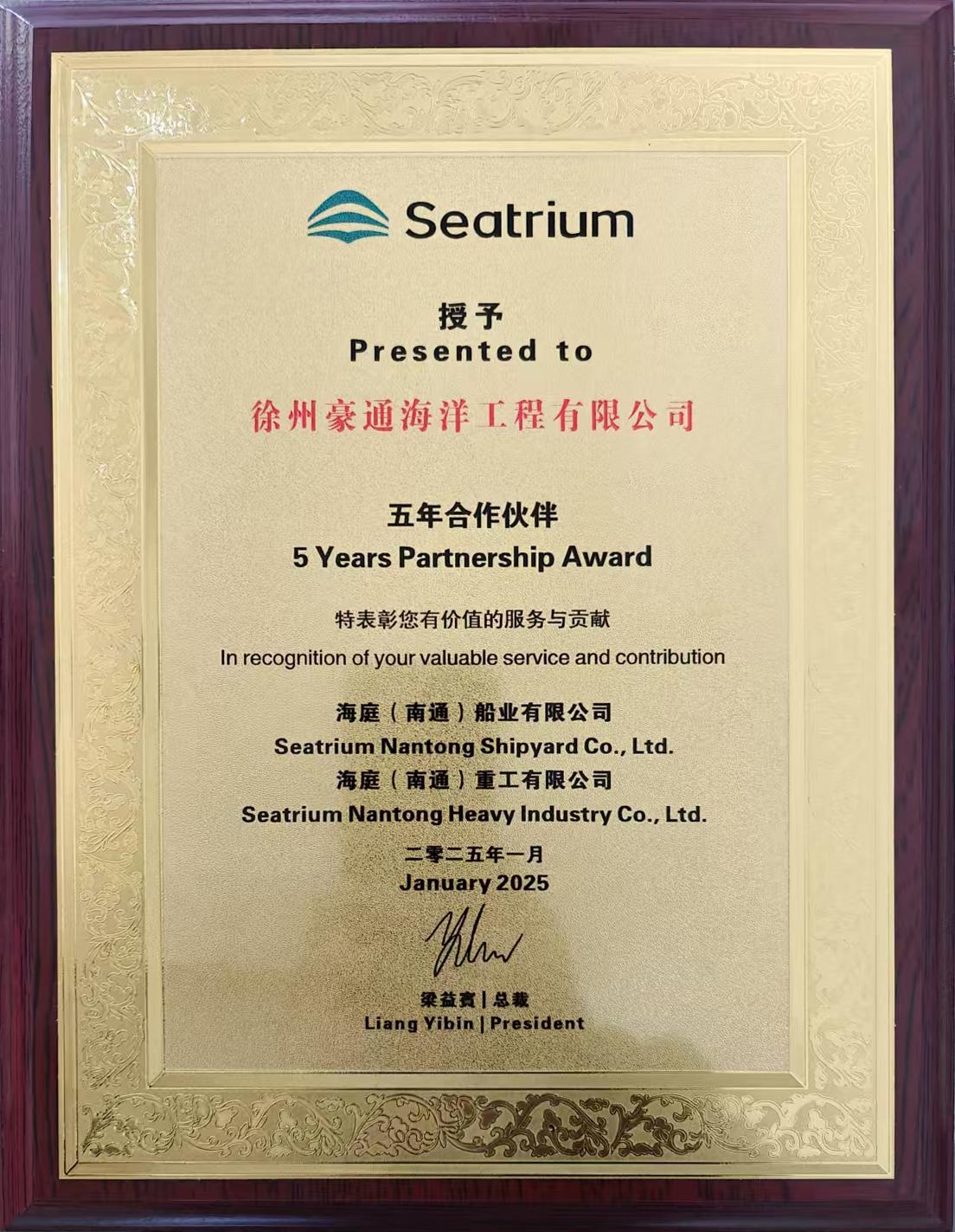 海庭重工五年合作伙伴